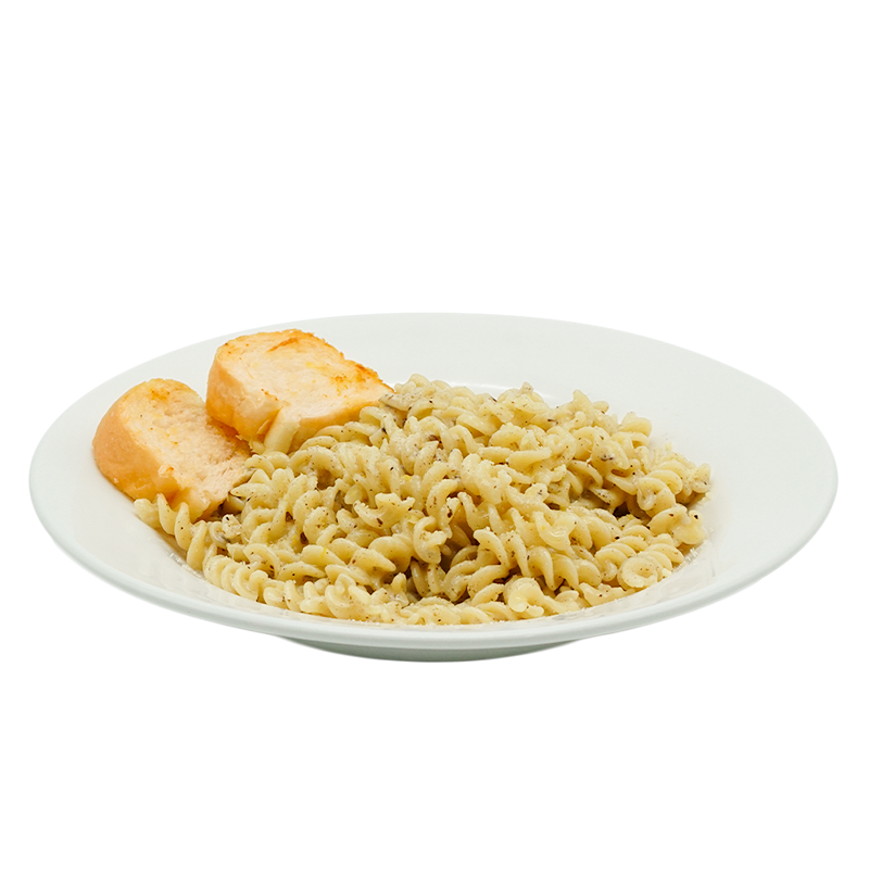 Fusilli pasta with black truffle in white sauce–earthy and utterly delicious.